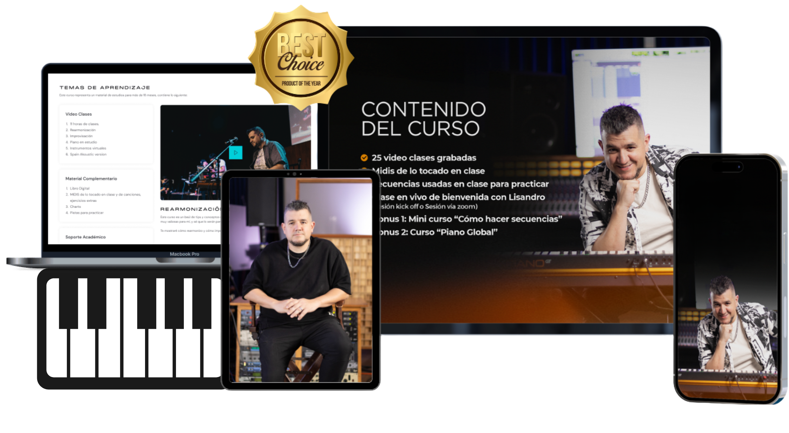 Incluye todos los cursos de Lisandro Pidre, donde verás todos los temas que cualquier pianista necesita para ser profesional y llegar al siguiente nivel.